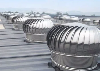 Turbovents provide effective natural ventilation, ensuring continuous air circulation inside the building without the need for power. They help in maintaining temperature balance and improving air quality, especially in large industrial spaces.